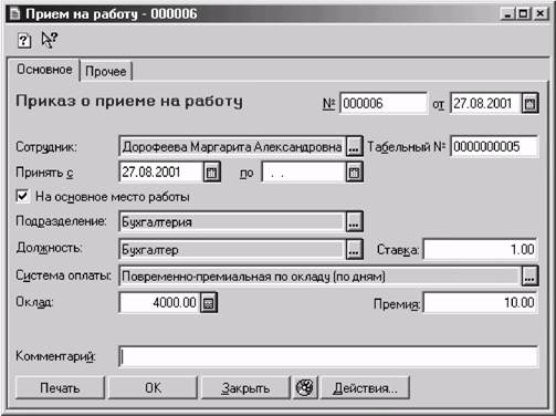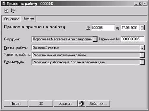 Оформление приема на работу в программе «1С: Зарплата и Кадры»