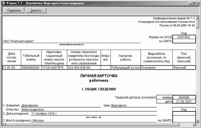 Работник отдела кадров на основании приказа (распоряжения) о приеме на работу заполняет личную карточку по форме № Т-2, делает отметку о зачислении на работу в трудовой книжке, а бухгалтерия открывает лицевой счет или соответствующий ему документ.