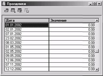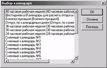В программе имеются различные календари, позволяющие, в частности, описать графики работы при 40-часовой, 36-часовой, 30-часовой, 24-часовой продолжительности рабочей недели в одну или несколько смен. Перечень календарей, включенных в типовую конфигурацию, приведен на рис. 22.