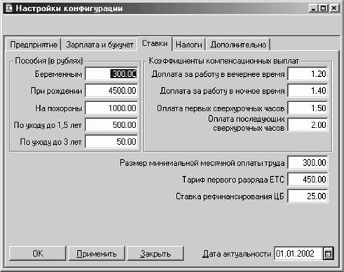 По умолчанию программа предлагает назначить пособие в том размере, который указан на закладке "Ставки" обработки "Настройки конфигурации (рис. 61).