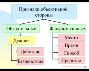 Объективная сторона правонарушения – это совокупность указанных в административно-правовой норме признаков, характеризующих внешнее проявление правонарушения. В связи с этим обязательным признаком объективной стороны состава административного правонарушения является деяние человека, которое выражается в форме действия или бездействия.