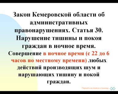 Закон Кемеровской области об административных правонарушениях Статья 30. Нарушение тишины и покоя граждан в ночное время.