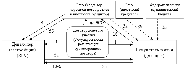 многоквартирного жилого дома с использованием средств покупателей-дольщиков и банковских кредитов (застройщику и дольщикам)