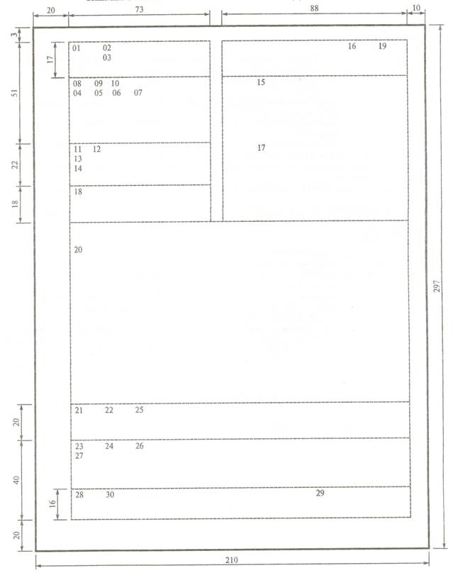 1 — Расположение реквизитов и границы зон на формате А4 углового бланка