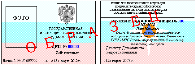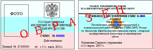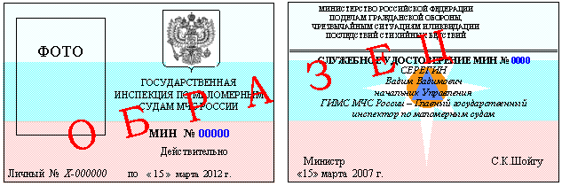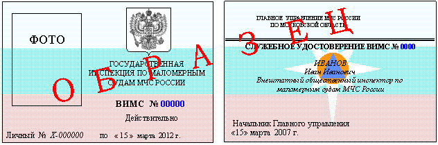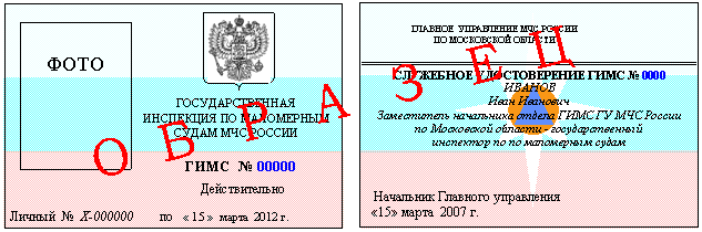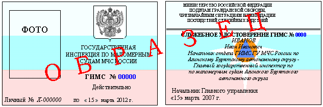 служебных удостоверений личного состава ГИМС МЧС России