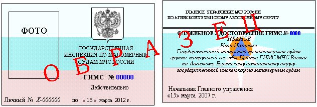 6.Образцы заполнения удостоверений ГИМС МЧС России.