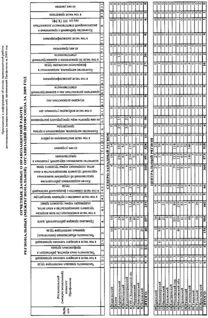 Региональными (межрегиональной) организациями Профсоюза в 2009 году защита социально-трудовых прав и законных интересов членов Профсоюза осуществлялась в соответствии с Уставом Профсоюза, Положением о правовой инспекцией труда Профсоюза и Программой действий Профсоюза по защите социально-трудовых прав и законных интересов членов Профсоюза в 2005–2010 годах.