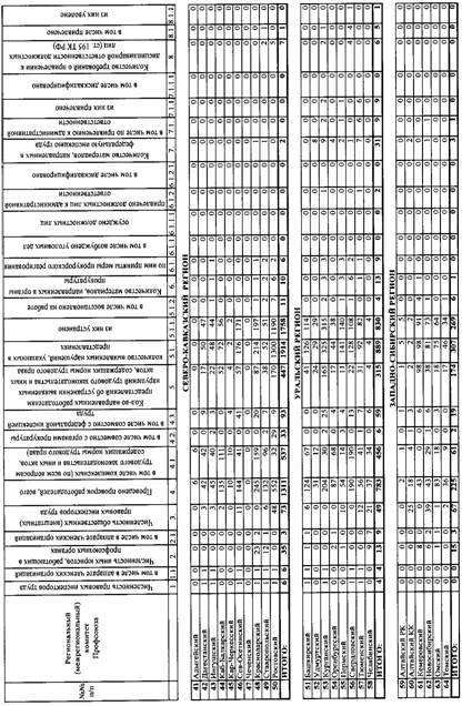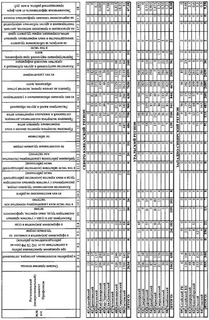 Из 322 рассмотренных в судах с участием правовых инспекторов труда и иных юристов, профсоюзного актива дел иски удовлетворены полностью или частично в 275 случаях, что составляет 86% от общего числа исков. На прежних рабочих местах восстановлено 45 человек. Наиболее эффективно защищали права членов Профсоюза в судебных органах работники Пермской (40), Курганской (35), Хабаровской (28), Ставропольской (23) Самарской (20), региональных и Санкт-Петербургской и Ленинградской области (20) межрегиональной организаций.