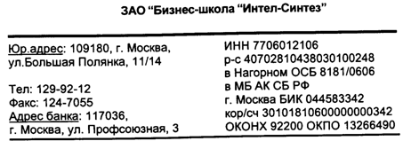 Так как письмо, как правило, предполагает переписку, в бланке для письма помещается адрес организации-автора. В состав этого реквизита входит индекс предприятия связи, почтовый адрес, номера телефонов, телексов, факсов, адрес электронной почты и WWW-страницы (если они есть), номера счетов в банке. Здесь же можно привести номер государственной регистрации организации, данные о лицензиях, патентах и другие справочные сведения.