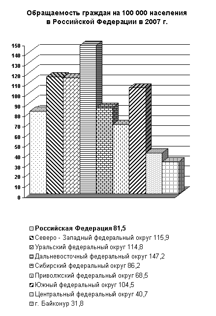 Показатель обращений на 100 тысяч населения по Российской Федерации составил 4 855 (в 2006 г. — 4 531,7).