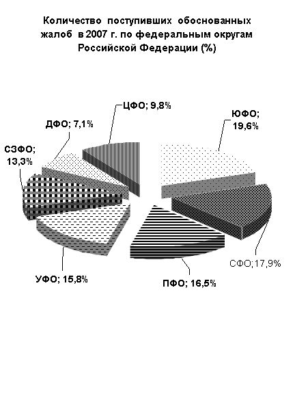 Наибольший показатель обращаемости граждан с жалобами в системе ОМС (на населения) в 2007 г. имел место в следующих федеральных округах: в Дальневосточном федеральном округе — 147,2; Северо-Западном федеральном округе — 115,9 и в Уральском федеральном округе — 114,8 (приложение 1).