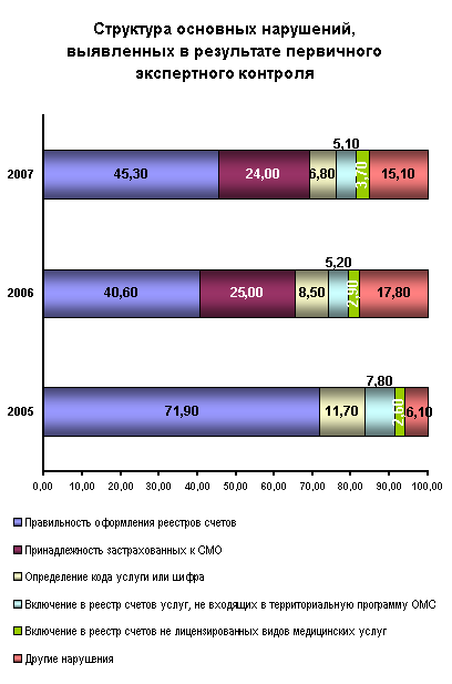 В отчетном периоде работу по организации и проведению экспертизы качества медицинской помощи в системе обязательного медицинского страхования осуществлялиспециалистов (2006 г. — 12158), в т. ч. 4665 штатных (2006 г. — 4376), из них 1412 специалистов ТФОМС (2006 г. — 1367) и 3253 СМО (2006 г. — 3009).