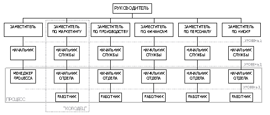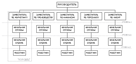 а) Руководитель находится выше подразделения на один уровень по иерархии (на Рис.28 Зам. директора по снабжению находится над Отделом снабжения, который он возглавляет):