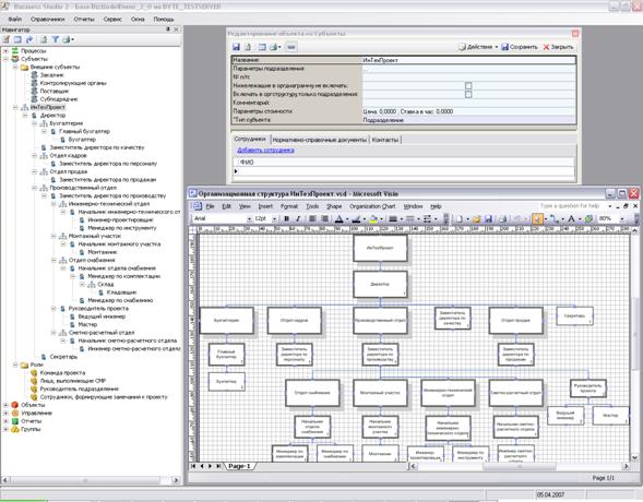 Подробнее про построение организационной структуры в Business Studio см. Руководство пользователя, глава 5 «Организационная структура».