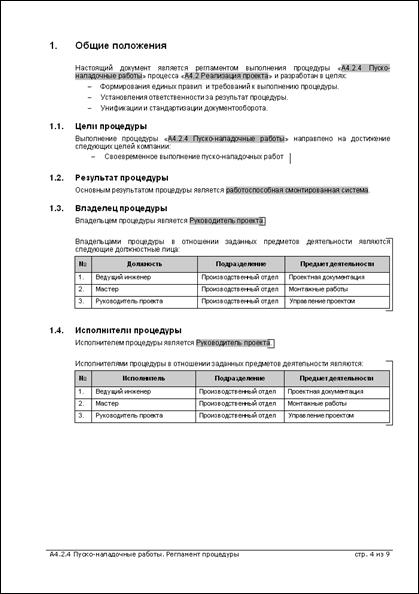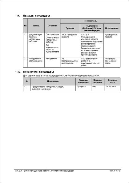 В Табл.2, Табл.3 и Табл.4 приведены основные параметры, которые необходимо заполнять для получения документов, регламентирующих деятельность подразделения и его сотрудников.