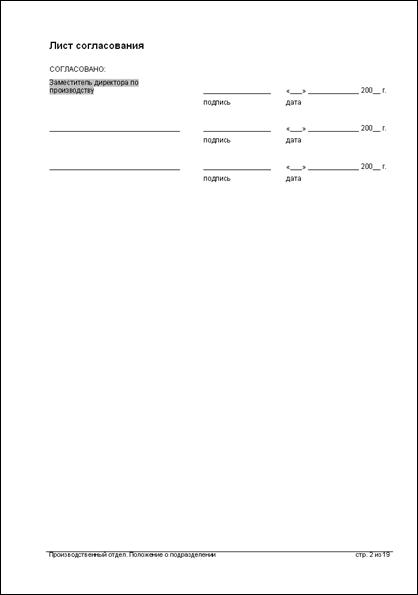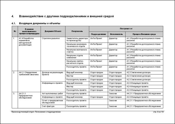 Ответственность – дополнительная к той ответственности подразделения, которая указана в шаблоне регламента «Положение о подразделении». |