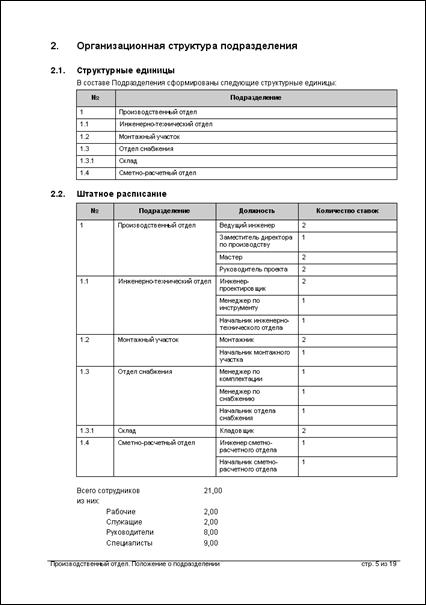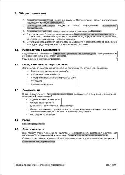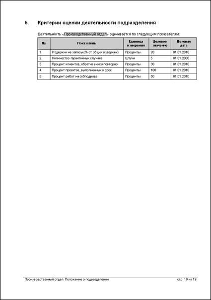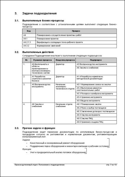 Задачи подразделения – дополнительные к тем задачам, которые указаны в шаблоне регламента «Положение о подразделении». |