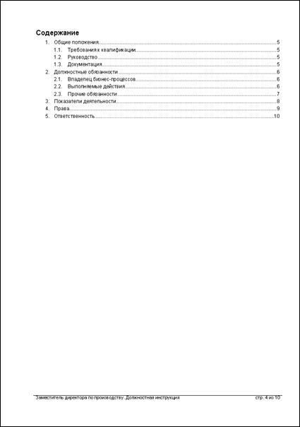 Должностные обязанности – дополнительные к обязанностям по исполнению бизнес-процессов, указанных в модели бизнес-процессов, и к обязанностям, которые указаны в шаблоне регламента «Должностная инструкция». |