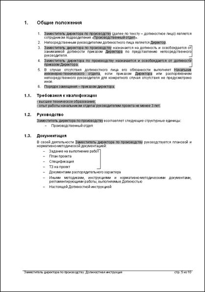 Порядок замещения должности другим сотрудником – заполняется и выводится в регламент вместо стандартной формулировки, используемой в шаблоне регламента «Должностная инструкция», в случае нестандартного порядка замещения. |