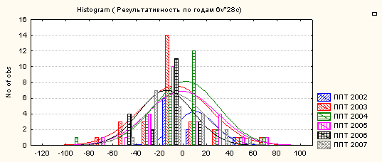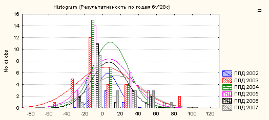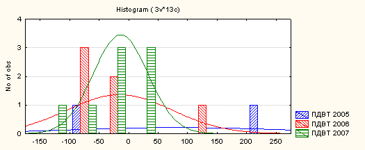 Вывод: планирование длительности на реализацию этапа проектов «Внутреннее тестирование» в 2007 г. существенно улучшилось по сравнению с 2005 годом.