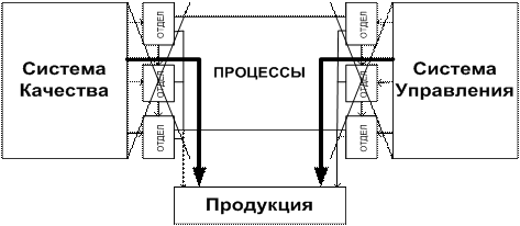 Процессом необходимо управлять по двум направлениям: через структуру и работу самого процесса, внутри которого имеются потоки продукции или информации, и через качество продукции или информации, протекающих внутри структуры.