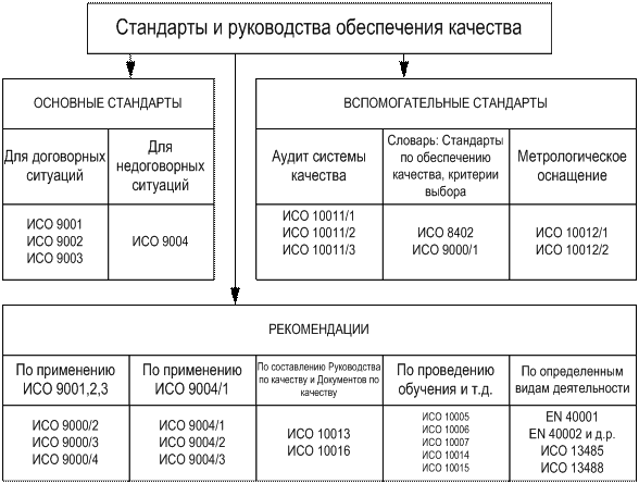 Эти стандарты содержат минимальные требования, которым должна соответствовать организация работ по обеспечению гарантии качества независимо от того, какую именно продукцию выпускает предприятие или какие услуги оно оказывает. В стандартах отсутствует описание методов, с помощью которых изложенные требования и рекомендации могут быть реализованы. Разработчики стандартов полагаются на инициативу и творчество конкретных исполнителей, которые в своих специфических условиях применят требования и рекомендации стандартов. Если система управления качеством, в рамках которой реализуются процессы управления на данном предприятии, соответствует требованиям указанных стандартов, то сегодня это воспринимается как убедительное доказательство способности предприятия обеспечить выпуск продукции или оказание услуг требуемого качества.