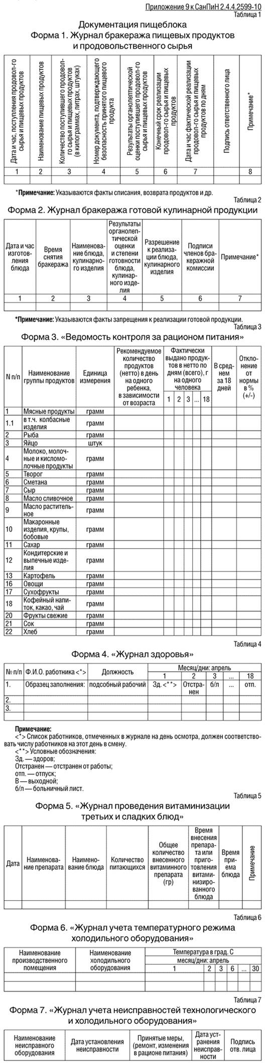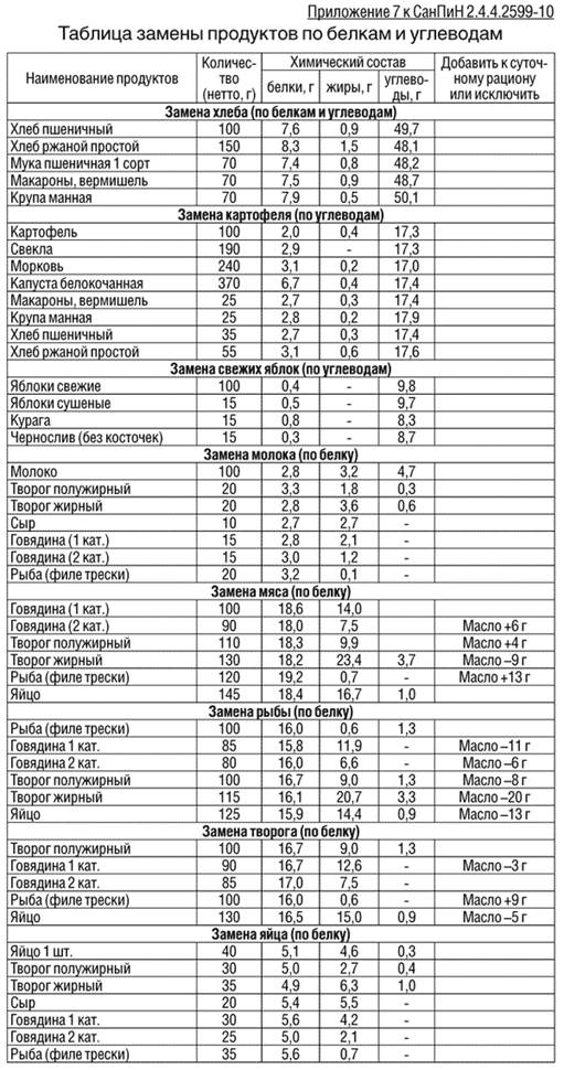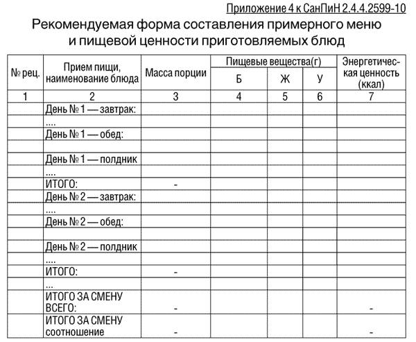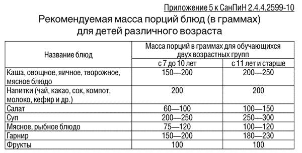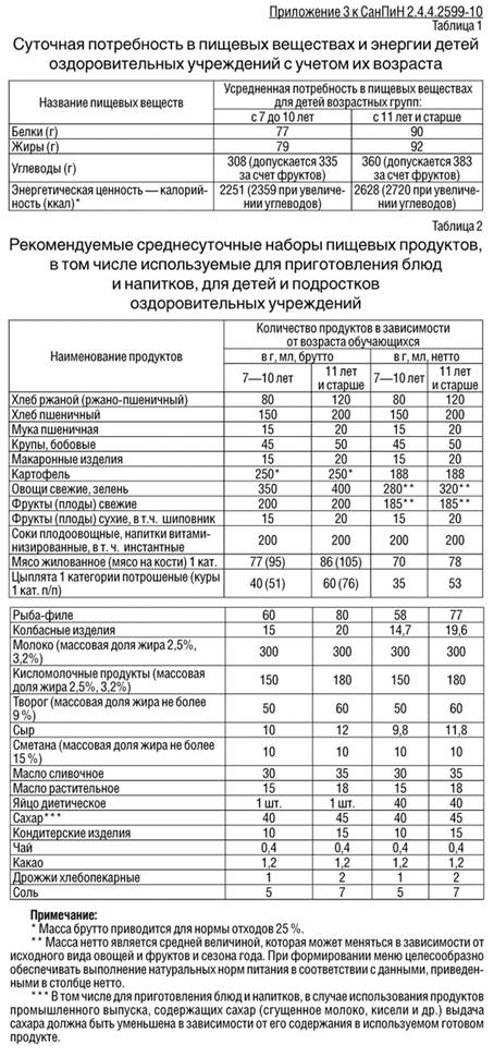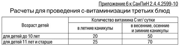 Приложение 10 к СанПиН 2.4.4.2599-10