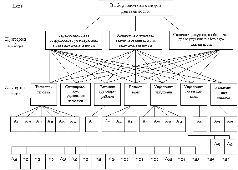 На сегодняшний день не существует определенных правил по формированию видов деятельности. Количество видов деятельности выбирается предприятием самостоятельно в зависимости от масштабов деятельности, специфики производства, поставленных управленческих задач. В связи с чем, в работе предлагается модель многокритериальной оптимизации выбора и ранжирования приоритетных видов деятельности в семи функционалах снабжения. По полученным результатам ранжирования предприятию представится возможность исключить при информационном отражении ТИ виды деятельности, обладающие незначительной важностью, либо провести глубокий анализ, используя все виды деятельности. Исходя из вышесказанного, представляется целесообразным для выбора приоритетных видов деятельности в логистике снабжения использовать инструментарий, основанный на методе анализа иерархий Т. Саати (МАИ).
