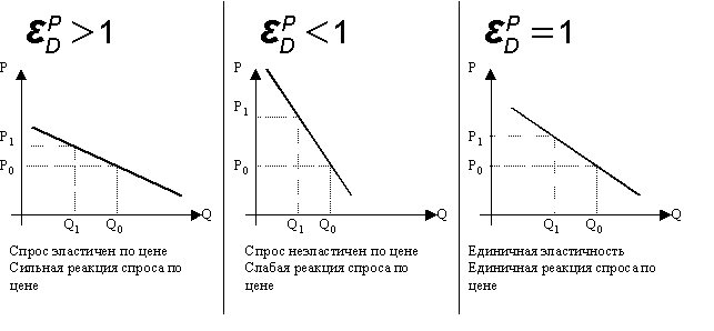 В том случае если коэффициент эластичности больше 1 (E > 1) – спрос является эластичным (на товары роскоши). Коэффициент эластичности меньше 1 (E < 1) – спрос неэластичный (на предметы первой необходимости). Коэффициент эластичности равен 1 (E = 1) – тогда имеем спрос с единичной эластичностью (зависит от индивидуального выбора). Таким образом, если коэффициент эластичности равен 0 (Е=0) спрос совершенно неэластичный (соль, медикаменты), и наоборот если коэффициент эластичности стремится к бесконечности (E![]()