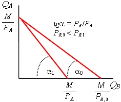 Qa=M/Pa – (Pb/Pa)Qb (7)