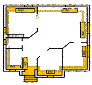 Существуют точные расчеты необходимой мощности радиаторов, которыми руководствуются специалисты, но для грубой оценки и предложенного простого метода достаточно. При этом методе расчета радиаторы могут оказаться чуть большей мощности, чем необходимо, но зато возрастет качество отопительной системы (возможна более точная настройка и низкотемпературный режим отопления). Вернемся к нашему дому.