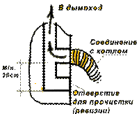 Ниже выхода в дымоход необходимо сделать еще одно отверстие, так называемую "ревизию", для прочистки дымохода.