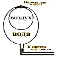 Увеличение объема воды в системе отопления при нагревании приводит к оттоку воды из системы в расширительный бак и сопровождается сжатием воздушного баллона в расширительном баке и увеличением давления в нем. Таким образом, вода также имеет возможность расширяться (как и в открытой системе), но нигде напрямую не контактирует с воздухом.