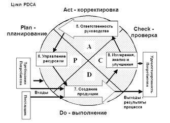 Рис.1. Цикл PDCA и схемы процессного подхода стандартов ИСО 9000