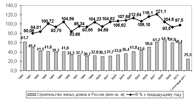 Рис. 2. Динамика ввода жилых домов в России за гг., I полугодие 2011 г.