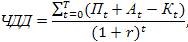 где r – норма дисконта; Пt – чистая прибыль организаций, осуществляющей строительство объектов доступной жилой недвижимости, стройиндустрии, смежных отраслей за период t=0 … Т; Аt – амортизационные отчисления; Kt – капитальные вложения в строительство объектов доступной жилой недвижимости, включая кредитные ресурсы |