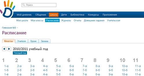 · в разделе «Школа» выбрать подраздел «Расписание», далее нужный класс;