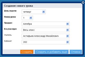 Создание урока возможно непосредственно в сетке расписания.