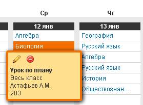 Редактирование расписания уроков