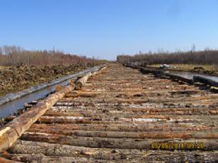 Капитальный ремонт ЛЧ МГ на слабонесущих грунтах, осуществляемое в сложных инженерно-геологических и природно-климатических условиях с постоянным перемещением строительной техники накладывает специфические особенности на организацию и технологию производства работ подготовительного периода. Наиболее трудоемкими работами в подготовительный период является возведение технологических проездов и площадок, которые необходимы для прохода строительной техники, перевозки людей и грузов, перебазировки строительных подразделений и рассчитаны на краткосрочную эксплуатацию (рис. 5).