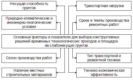 Рис. 6. Факторы и показатели для выбора конструкции технологических проездов и площадок