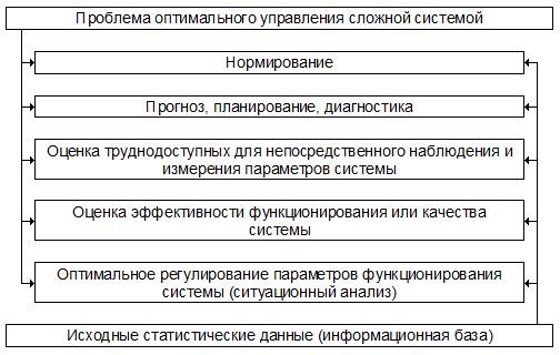 Восстановление подобных зависимостей опирается на решение следующих задач: определить смысл, в котором понимается исследуемая зависимость; определить связь между исследуемыми переменными и как измерить тесноту этой связи; определить математический вид искомой связи между h и x; определить степень точности обработки ограниченного ряда наблюдений. Для решения этих задач использовался экспертно-статистический метод, когда "входные" переменные носят случайный характер. В работе предложен метод восстановления эмпирических зависимостей в случае, когда "входные" переменные являются измеряемыми параметрами, для которых строительные нормы и правила устанавливают допустимые значения. Проблема оптимального управления сложной системой состоит из нескольких составляющих (рис. 10) в разработке которых существенную роль играет математический аппарат статистического исследования зависимостей.