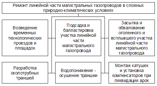 Рис. 13. Составляющие структуры подраздела <ремонт газопроводов в сложных природно-климатических условиях>