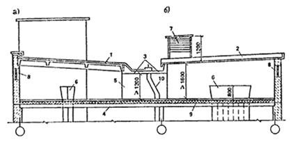 а — покрытие с рулонной кровлей; б ¾ покрытие с безрулонной кровлей