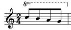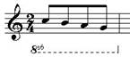 Для обозначения октав также приняты определенные значки. Звуки малой октавы записываются маленькой буквой с цифрой 1 сверху, второй – с цифрой 2 сверху и т. д. Звуки большой октавы записываются большой буквой, контроктавы – большой буквой с цифрой 1 снизу, субконтроктавы – большой буквой с цифрой 2 снизу.