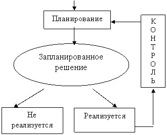 Таким образом, планирование есть составная часть рационального образа действий в соответствии со следующей схемой: планирование-принятие решения-реализация-контроль.