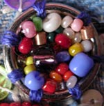 Перед началом работы проверьте, не смоется ли краска, не сойдет ли перламутр с бусинок, не расплавятся ли бусинки во время стирки, отпаривания или глажения, если возникнет необходимость в таких операциях с тканью. Можно заранее изготовить бусины самим, об этом читайте в разделе "статьи".