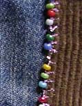 Шов выполняется как обыкновенный обметочный, только в каждую петельку вставляется бисеринка. Я обметала так карман джинсов, получилось очень красиво ;)