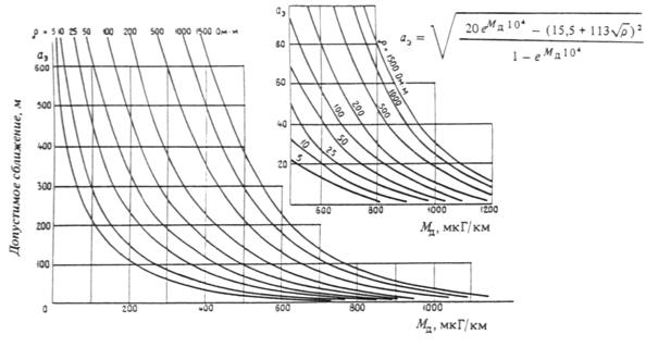 Допустимое сближение определяется по рисунку В.1.