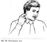 Этот жест говорит о сомнении и неуверенности человека, который говорит: «Я не уверен, что я с вами согласен». Он особенно бросается в глаза в том случае, если он противоречит вербальному языку, например, если человек говорит нечто подобное: «Я отлично понимаю, что вы испытываете».